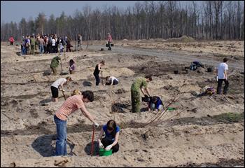 К мероприятию присоединились около 300 человек, из них – более 260 волонтеров. Ударным трудом за два дня было высажено более 30 000 деревьев на площади в 10 гектаров.