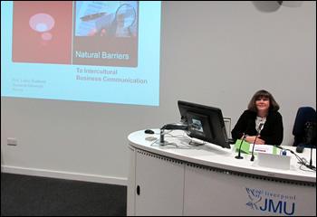 Заведующая кафедрой английской филологии факультета РГФ, профессор Любовь Цурикова провела серию лекций для преподавателей, аспирантов и магистров в Ливерпульском университете Джона Морза (Великобритания). Лекции были посвящены проблемам теории и практики межкультурного общения в условиях бизнес коммуникации и в научной сфере.