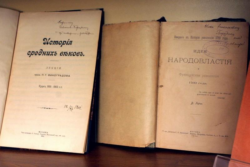 «Жемчужиной» библиотеки И.Н. Бороздина являются книги с автографами. На выставке представлены экземпляры с дарственными надписями ученых – историков: В.Г. Бузескула, П.Г. Виноградова, В.И. Герье, М.К. Любавского, С.Ф. Платонова, Е.В. Тарле и др.