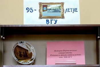 Книжная экспозиция «История Воронежского университета. Издания из фонда отдела редких книг ЗНБ ВГУ» завершает цикл выставок, посвященный 95-летию университета. На ней представлены издания XX–XXI веков, рассказывающие о становлении и развитии нашего вуза.