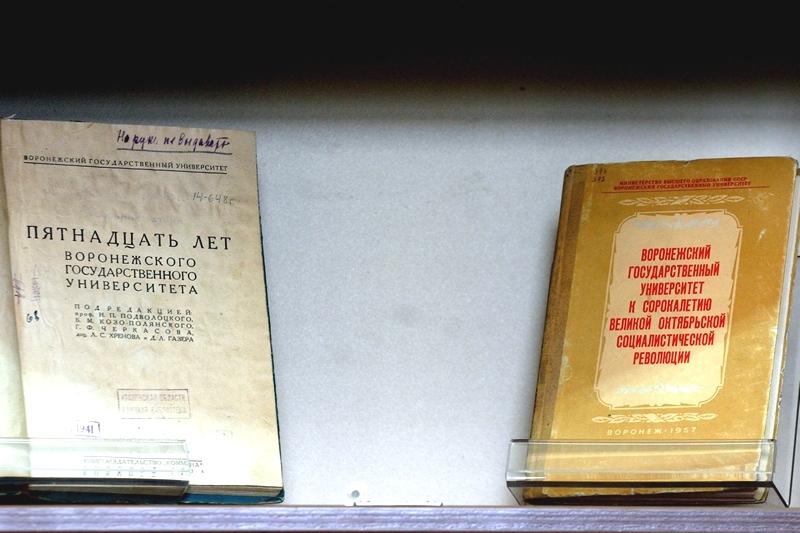 Первой послевоенной книгой, в которой содержались исторические сведения развития университета, стал сборник, «Воронежский государственный университет. К сорокалетию Великой Октябрьской социалистической революции» (Воронеж, 1957), также представленный на выставке.
