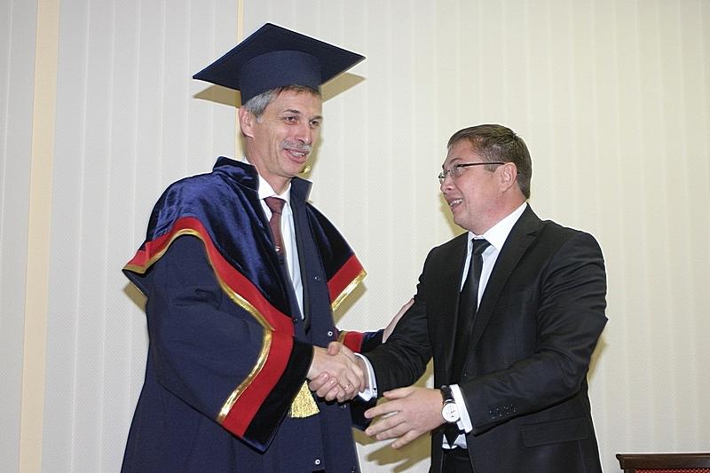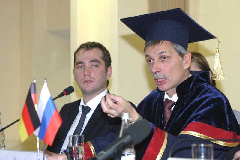 21 ноября в конференц-зале главного учебного корпуса ВГУ состоялось торжественное вручение диплома и мантии Почетного доктора Воронежского государственного университета проректору по стратегическому планированию и контролю качества Вестфальского университета имени Вильгельма, почетному профессору ВШЭ Йоргу Беккеру.