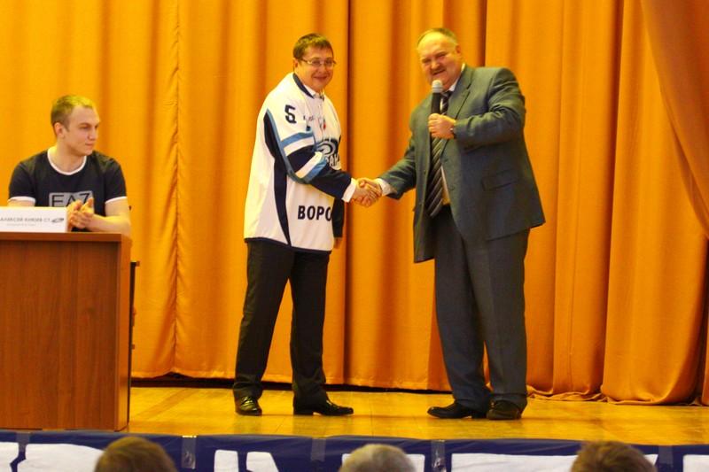 На встрече прозвучало предложение включить ректора ВГУ в состав фан-клуба ХК «Буран». Директор ХК «Буран» Сергей Ткачев поддержал это предложение и после того, как подвёл в своей речи итоги прошедшего сезона, вручил Дмитрию Ендовицкому именной свитер «Бурана» с номером «пять».