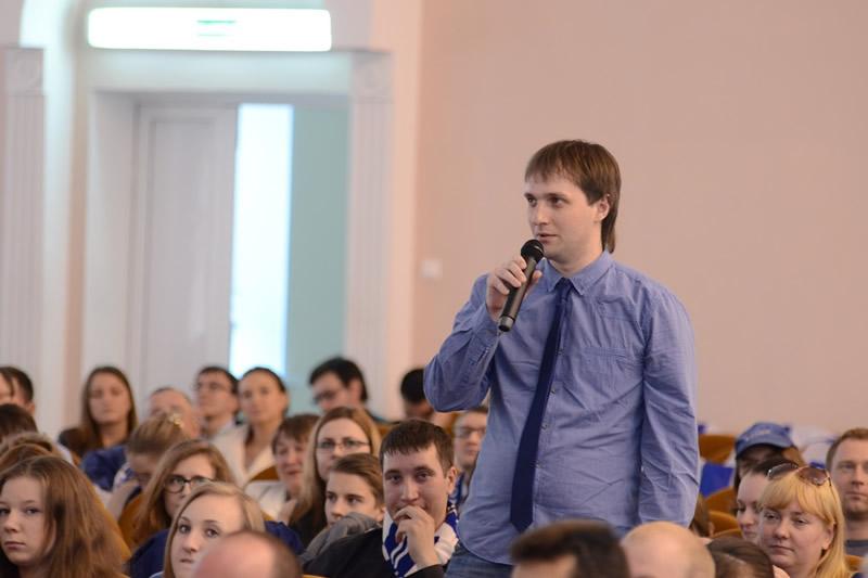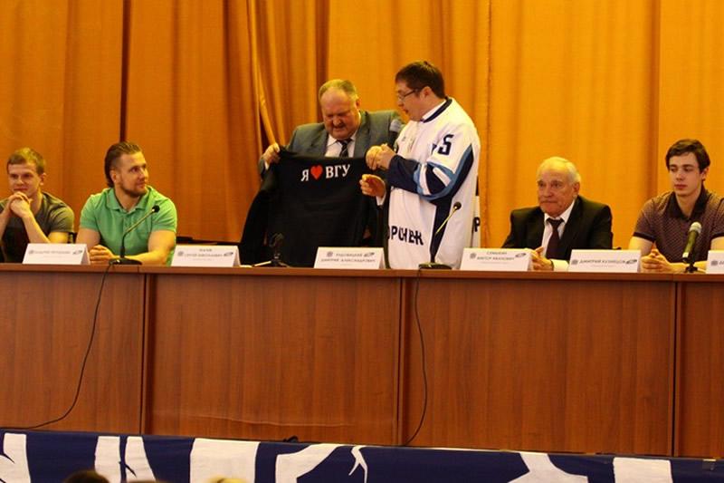16 апреля в актовом зале Главного учебного корпуса Воронежского государственного университета состоялась встреча руководства и команды хоккейного клуба «Буран» с сотрудниками, студентами вуза и болельщиками.