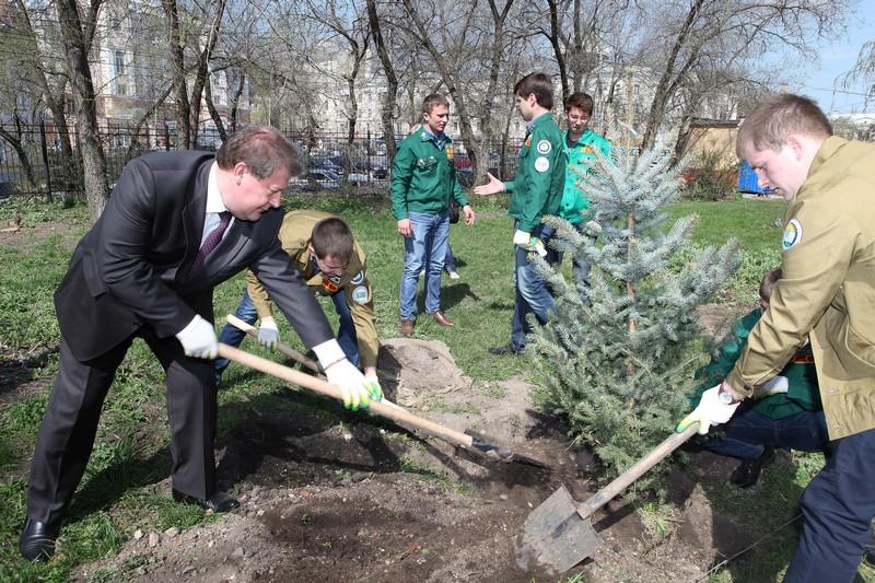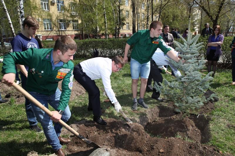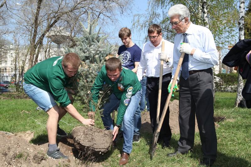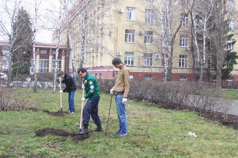 Кроме того, активисты Штаба студенческих отрядов высадили ели на территории университета в рамках общегородского субботника.