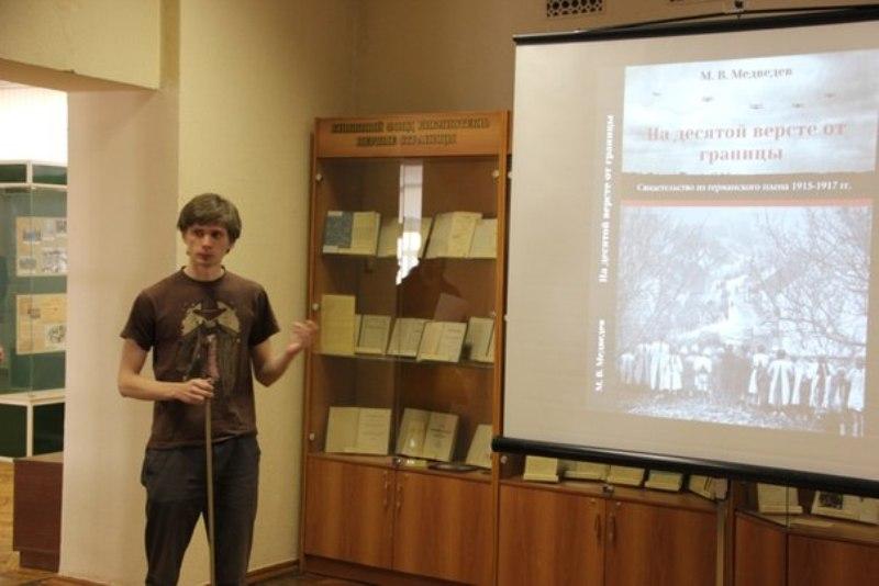 28 апреля в Музее книги Воронежского государственного университета состоялась презентация книги М. В. Медведева «На десятой версте от границы. Свидетельство из германского плена 1915–1917 гг.: [стихотворения]», посвящённой 95-летию ВГУ и 100-летию Первой мировой войны. Издание подготовили студенты третьего курса направления «Издательское дело» филологического факультета совместно с преподавателем, доцентом Анастасией Лапотько.