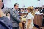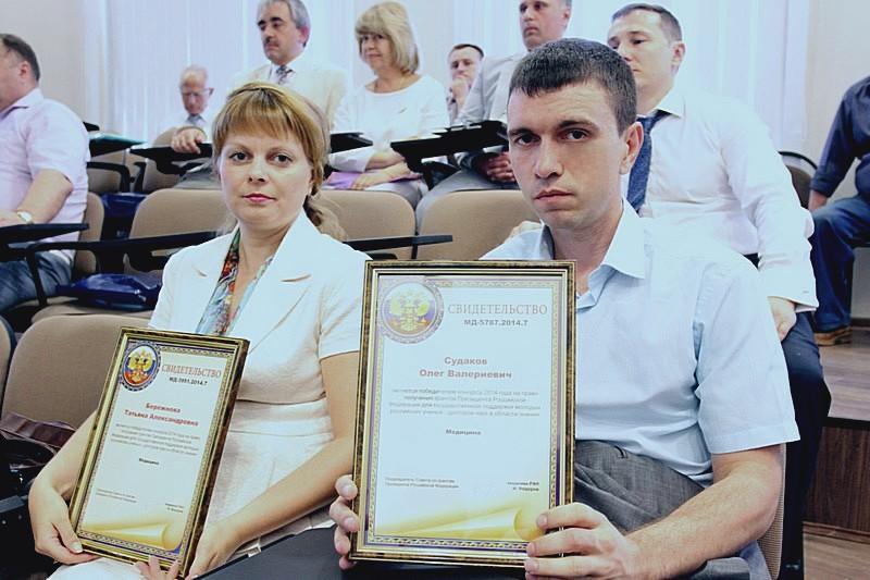 Мероприятие открылось торжественным вручением грантов Президента РФ молодым ученым: Александру Леньшину (ВГУ), Сергею Епринцеву (ВГУ), Татьяне Бережновой (ВГМА им. Н.Н. Бурденко), Виталию Василенко (ВГУИТ), Олегу Судакову (ВГМА им. Н.Н. Бурденко).