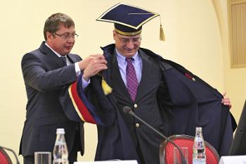 20 июня в конференц-зале Главного учебного корпуса Воронежского государственного университета состоялось торжественное вручение диплома и мантии Почётного доктора ВГУ профессору университета штата Небраска (США) Энтони Старасу.