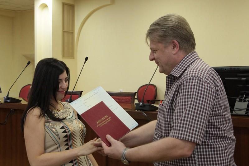 – Красный цвет ваших дипломов свидетельствует о том труде, который вы вложили в своё образование на протяжении трёх лет. Поздравляю вас и надеюсь, что вы сможете правильно применить все те знания, которые получили.