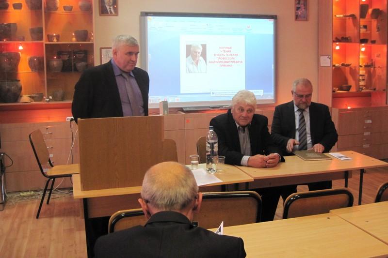 Феномену А.Д. Пряхина было посвящено сообщение заведующего кафедрой археологии и истории древнего мира А.П. Медведева. Директор государственного археологического музея-заповедника «Костенки» В.Н. Ковалевский проинформировал присутствующих о роли профессора в создании археологического музея ВГУ.