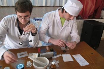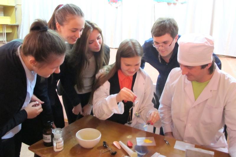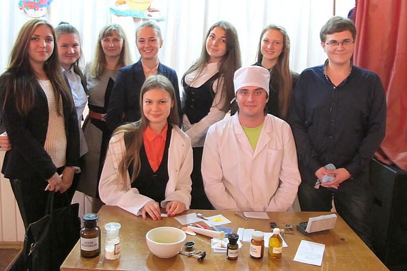 Доцент кафедры фармакологии фармацевтического факультета В.В. Андреева показала ребятам фильм о факультете, а также вместе со студентами организовала импровизированную аптеку, где лицеисты смогли взвесить и смешать препараты, попробовать витамины в порошках.