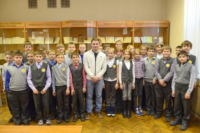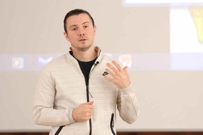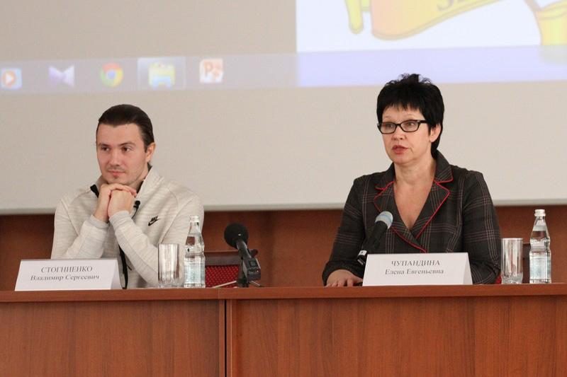Владимир Стогниенко рассказал собравшимся о навыках и знаниях, которыми должен обладать спортивный комментатор, о тонкостях профессии, показал презентацию и отрывки видеозаписей футбольных матчей, на примере которых продемонстрировал специфику своей работы.