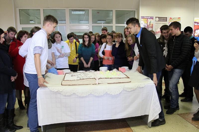 В рамках закрытия Фестиваля участников ждал еще один приятный сюрприз от ректора ВГУ – 15-ти килограммовый торт в виде книги.