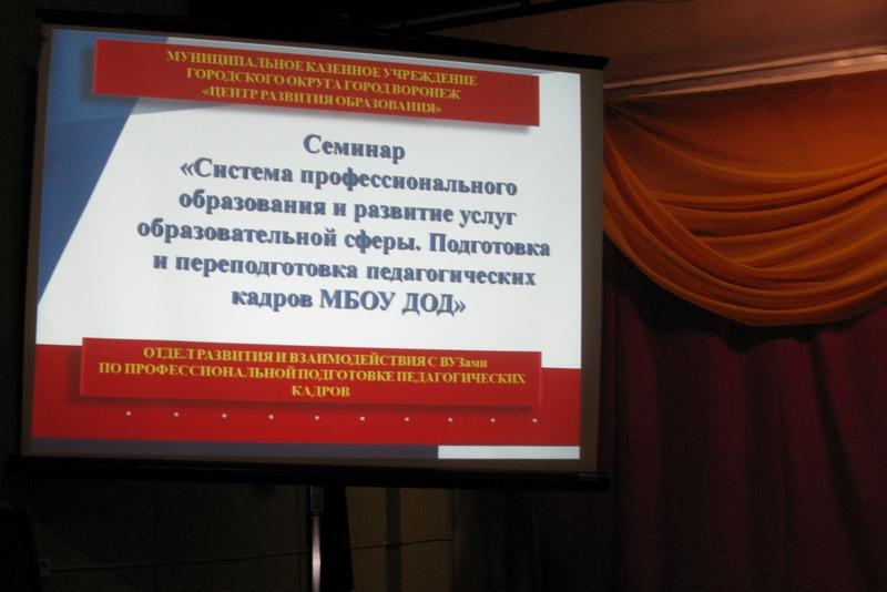 18 ноября в воронежском городском Дворце творчества детей и молодёжи прошёл семинар «Система профессионального образования и развитие услуг образовательной сферы. Подготовка и переподготовка педагогических кадров МБОУ ДОД».