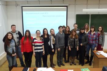 Заместитель декана по научной работе, руководитель совместной лаборатории Системного моделирования социально-экономических процессов ВГУ и ЦЭМИ РАН, доцент кафедры ИТиММЭ Ирина Щепина в своей вступительной речи рассказала о научной деятельности на факультете, выразила поддержку проекту и сообщила, что первым мероприятием в рамках проекта «Пространство развития» будут лекции д.э.н. А.Савватеева (РЭШ, ЦЭМИ РАН, МФТИ, ИГУ, Яндекс) о Нобелевской премии по экономике 2014 г. – о результатах Жана Тироля и о поисках адекватной модели поведения людей, которые состоятся 5 декабря 2014 г. в ауд. 206А нового корпуса экономического факультета.