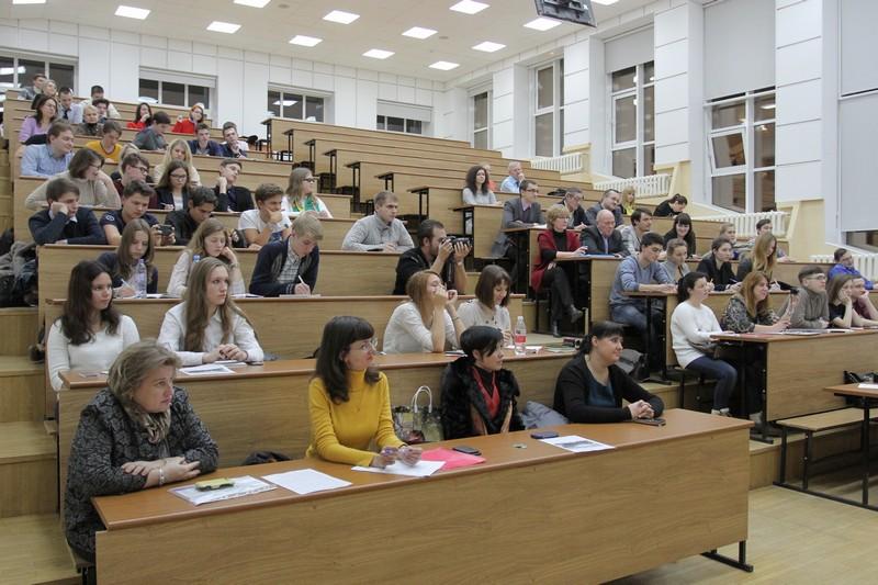 На лекции присутствовали более шестидесяти человек: преподаватели, аспиранты, магистранты, студенты ВГУ и учащиеся экономических классов гимназии имени академика Н.Г. Басова.