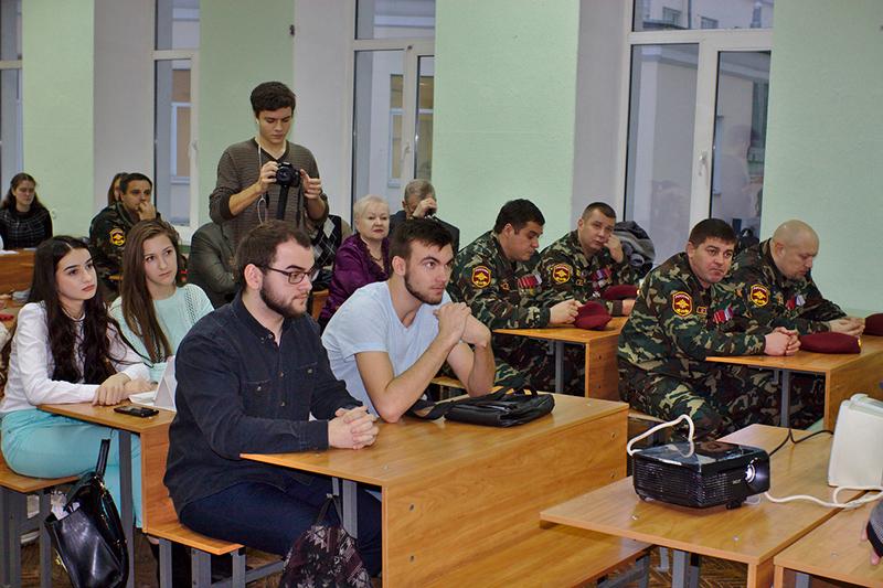 Память погибших в борьбе с терроризмом почтили минутой молчания. Студенты филологического факультета Зоя Жосу, Мария Конорева и Анастасия Артеменко выступили с презентациями книг о войне в Чечне. В заключительной части мероприятия студенты смогли задать интересующие их вопросы ветеранам спецназа.