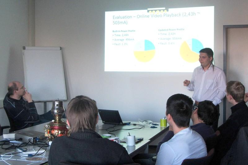 Студенты представили работы по следующим темам: «Метод расчёта профилей энергопотребления на платформе Android», «Использование облачных вычислений для улучшения энергопотребления мобильных приложений» в пределах общей темы межвузовской научной работы «Энергоэффективность мобильных устройств». Работы были удостоены высшего балла – 1,0 ("sehr gut").