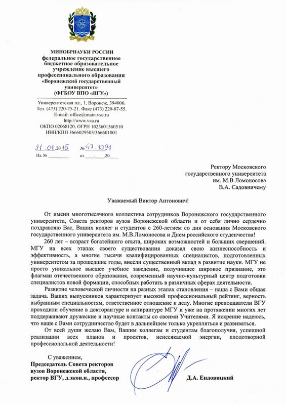 Многие преподаватели Воронежского государственного университета проходили обучение в докторантуре и аспирантуре Московского государственного университета им. М.В. Ломоносова и уже на протяжении многих лет поддерживают дружеские и научные контакты со своими Учителями.