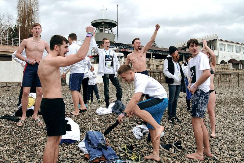 Несмотря на вполне естественную для первого дня суматоху, студенты Воронежского государственного университета открыли купальный сезон. Стоит отметить, что ребята рискнули окунуться в февральское море ради самой крутой фотографии. Организаторы объявили конкурс дня – «селфи с капитаном», и фотография, набравшая максимальное количество репостов, должна была принести капитану команды-победителя звание «Капитан студмарафона». Фото, сделанное нашими ребятами, набрало свыше 350 репостов и принесло команде «Доктор наук академик Шварценгольт» несомненное лидерство. Николай Середа стал «Капитаном студмарафона».