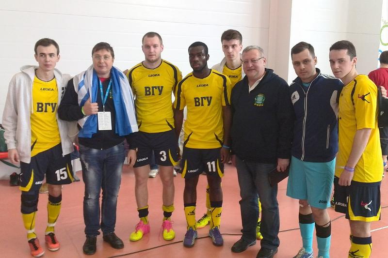 6 февраля состоялся второй конкурсный день «Всероссийского студенческого марафона», который смело можно назвать самым сложным эмоционально. Первым испытанием дня для команд стало соревнование по мини-футболу, в котором честь Воронежского государственного университета защищала сборная под руководством тренера, преподавателя кафедры физической культуры и спорта Евгения Соловьева в составе студента исторического факультета Артёма Кольцова, студента экономического факультета Артёма Мальцева, студента факультета компьютерных наук Антона Караблина, студента математического факультета Сергея Бабичева, студента математического факультета Павла Елютина, студента экономического факультета Питера Эннина.