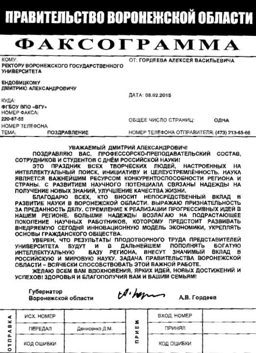 Губернатор Воронежской области Алексей Гордеев поздравил коллектив и студентов Воронежского государственного университета с Днем российской науки.