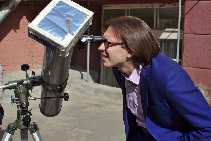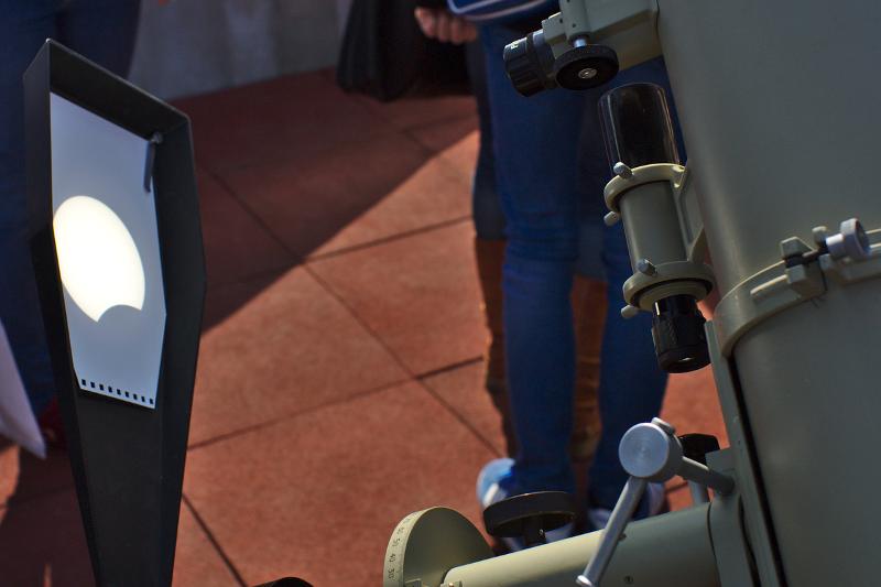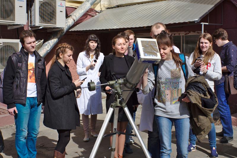 Профессиональные наблюдения этого редкого и красивого астрономического явления организовала астрономическая обсерватория ВГУ. Все желающие смогли подняться на наблюдательную площадку на крыше главного корпуса и понаблюдать за затмением при помощи университетского телескопа, оборудованного специальным светофильтром.