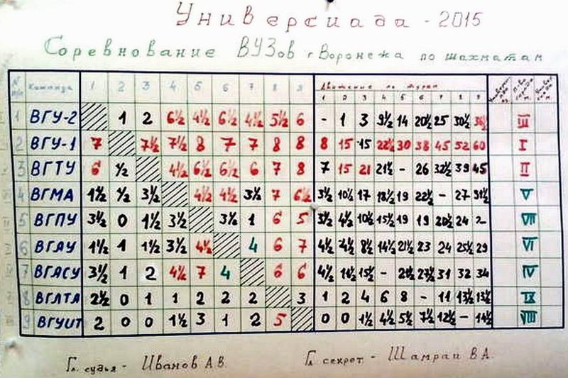 Стоит отметить, что, начиная с 1994 года, сборная ВГУ неизменно становится победителем Межвузовской универсиады по шахматам. 2015 год не стал исключением.