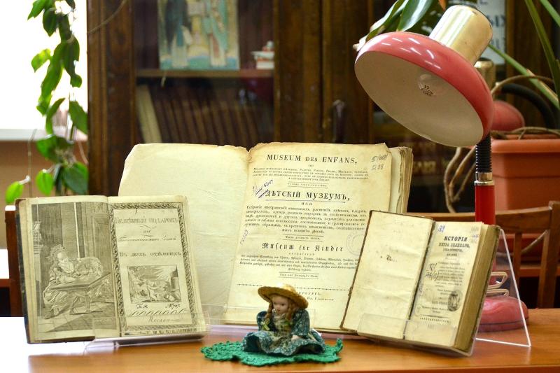 Самым ранним изданием экспозиции является книга «Бесценный подарок для благовоспитываемых детей, или новая детская библиотека…» (Москва, 1803). Ее автор – известный немецкий детский писатель и педагог И.Г. Кампе (1746–1818). Оригинальным оформлением и насыщенным содержанием отличается сборник рассказов для детей «В добрый час!», составленный «по английским и американским писателям» Е.М. Чистяковой-Вэр. В серии «Библиотека детского чтения» опубликован рассказ литератора, детского писателя Н.А. Соловьева-Несмелова (Москва, 1902).