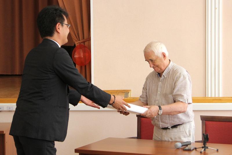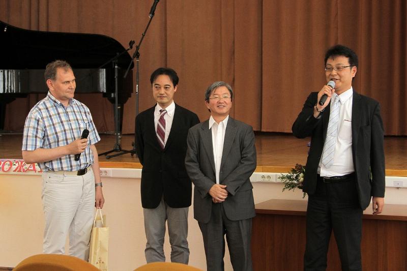 Директор компании OTSL Inc. Takayuki Maruyama поздравил собравшихся, вручил памятный подарок и подчеркнул, что выпускники факультета компьютерных наук выстраивают своеобразный мост между двумя странами, который позволит обмениваться технологиями и благодаря этому делать жизнь людей лучше. Эдуард Алгазинов проинформировал собравшихся о том, что успешно прошли переговоры с компанией о стажировках студентов ВГУ в Японии. Такая возможность будет предоставляться выпускникам Учебного центра компании DSR.