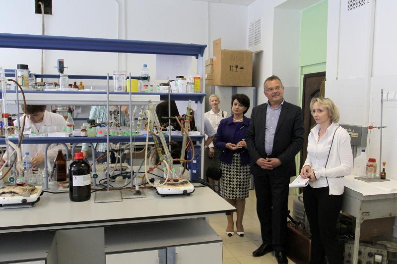 После чего австрийская делегация посетила лабораторию органической химии, которая была создана в рамках реализации постановления Правительства № 218 по созданию высокотехнологичного производства совместно с компанией «ЭФКО». Заведующий кафедрой органической химии, профессор Хидмет Шихалиев рассказал об основных направлениях работы ученых кафедры. Суть проекта – более глубокая переработка растительных масел в химическую продукцию – моющие, косметические средства. Сейчас в мире наблюдается определенный тренд – замена химических средств в косметических продуктах на натуральные, так называемая линия «Green Chemistry». Ученые кафедры органической химии разрабатывают в рамках реализуемого проекта технологии производства растительных средств и веществ.