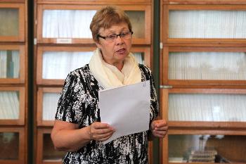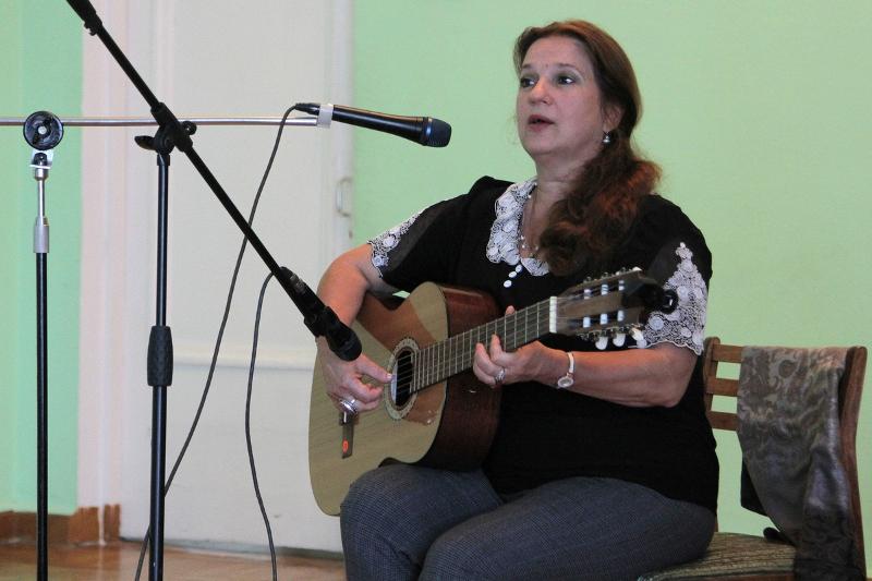 Пока преподаватели филфака проверяли работы, перед конкурсантами выступила с музыкально-поэтической композицией Вера Родионова, представитель Клуба авторской песни «Парус».