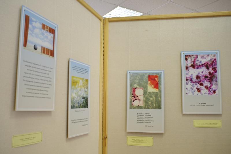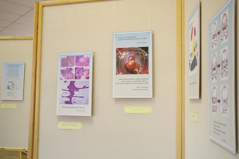 Выставка творческих работ Зои Воронцовой – это отчасти иллюстративный материал к лекциям по гистологии. Литературные и изобразительные ассоциации автора помогают по-иному увидеть и понять сложный клеточный мир человека. Ассоциации Зои Афанасьевны порой неожиданны, но очень точны; талантливые писатели, поэты и художники, как ни странно, точно вплетены в рассказ о науке «гистология» и становятся еще одной художественной опорой для восприятия окружающего мира и человеческого тела.
