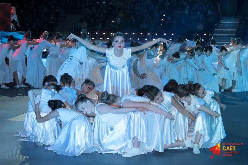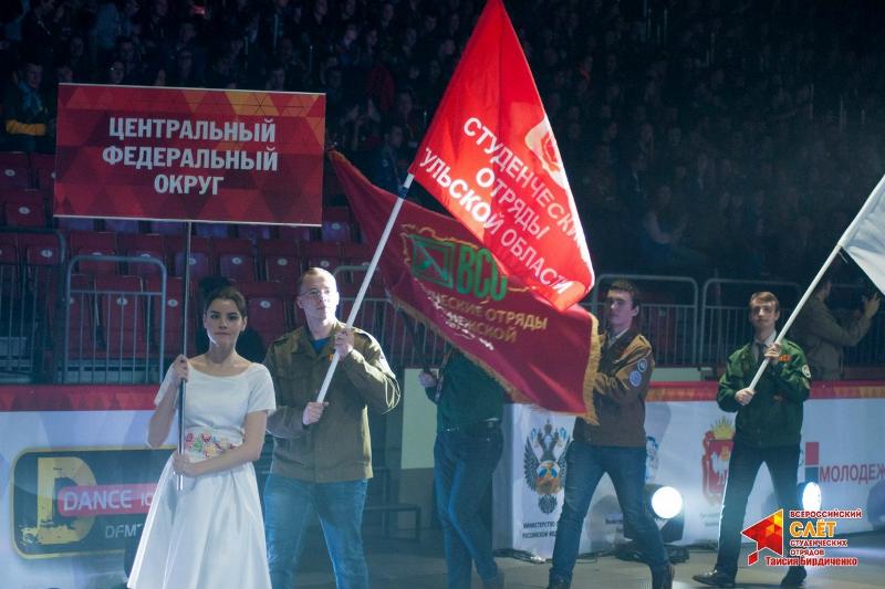 После насыщенного дня в ледовой арене «Трактор» состоялось торжественное открытие Всероссийского слета – 2015. Участники увидели театральное представление, танцевальные номера, демонстрацию флагов каждой области, присутствующей на мероприятии.