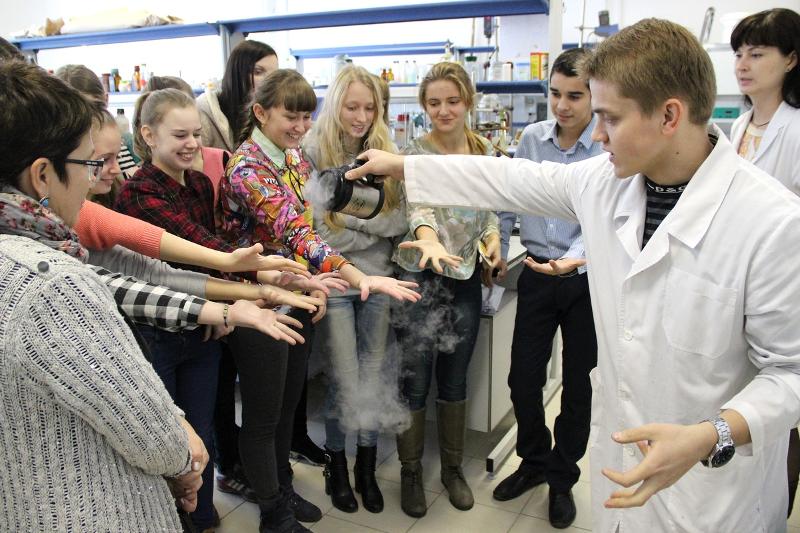 В ноябре школьникам города Воронежа и области представилась возможность максимально погрузиться в игровые формы познания мира химии. В рамках проекта «Осенний университет на химическом факультете» для учащихся 9-11 классов учебных заведений Воронежа, Россоши, Лисок, Семилук, Костенок прошел ряд мероприятий: викторины, конкурсы, практические задания. Учащиеся смогли самостоятельно осуществить известные из школьного курса и еще не знакомые превращения химических соединений и почувствовать себя на один день студентами химического факультета Воронежского госуниверситета.