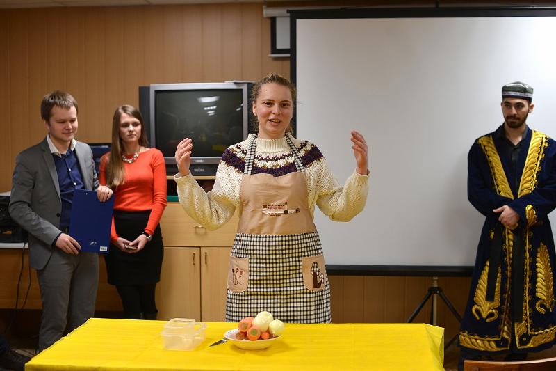 Кроме основного блюда, ребята приготовили салаты, выбирая для них ингредиенты на свой вкус, некоторые гости также представили их любимые блюда. Студенты ИМО ВГУ Хань Тао и Шаньчуань Чжицзы принесли три необычных китайских блюда. Они рассказали об их истории и показали их традиционную упаковку. Кроме того, студент факультета РГФ Артем Смольянинов приготовил для собравшихся пирог.