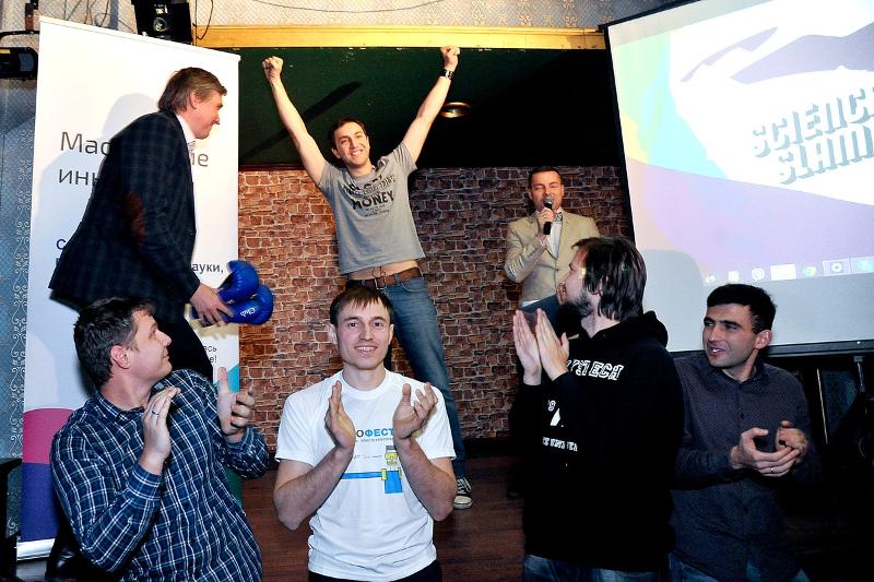 Аспирант Московского физико-технического института, победитель Science Slam Москва, научный журналист Олег Фея за короткое время постарался рассказать, как определить материалы, вызывающие рак; выступление специалиста по термоэлектрическим материалам, НИТУ «МИСиС» Андрея Воронина было посвящено термоэлектричеству; сотрудник Лаборатории метаматериалов ИТМО (Санк-Петербург) Иван Иорш попробовал за 10 минут согнуть луч света; инженер Лаборатории металловедения Сибирского химического комбината, аспирант Северского технологического института НИЯУ МИФИ (Томская область) Артем Елькин назвал свое выступление «Перекрыть кислород!». ВГУ представлял аспирант физического факультета, методист областного центра технического творчества учащихся департамента науки, образования и молодежной политики Воронежской области Дмитрий Жукалин. Именно его выступление «Материалы будущего. Как взмах крыла бабочки приводит к цунами» было признано лучшим. Победителю был вручен традиционный приз – настоящие боксерские перчатки.