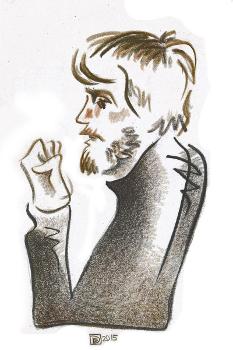 Особую атмосферу взаимодействия спикера и слушателей запечатлел на бумаге художник Денис Булавинцев, отразив задумчивые лица пришедших гостей.