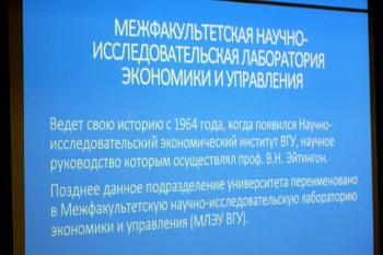 На экономическом факультете ВГУ прошла презентация итогов работы научно-исследовательских лабораторий факультета: межфакультетской научно-исследовательской лаборатории экономики и управления и совместной научно-исследовательской лаборатории по системному моделированию социально-экономических процессов ВГУ и Центрального экономико-математического института РАН.