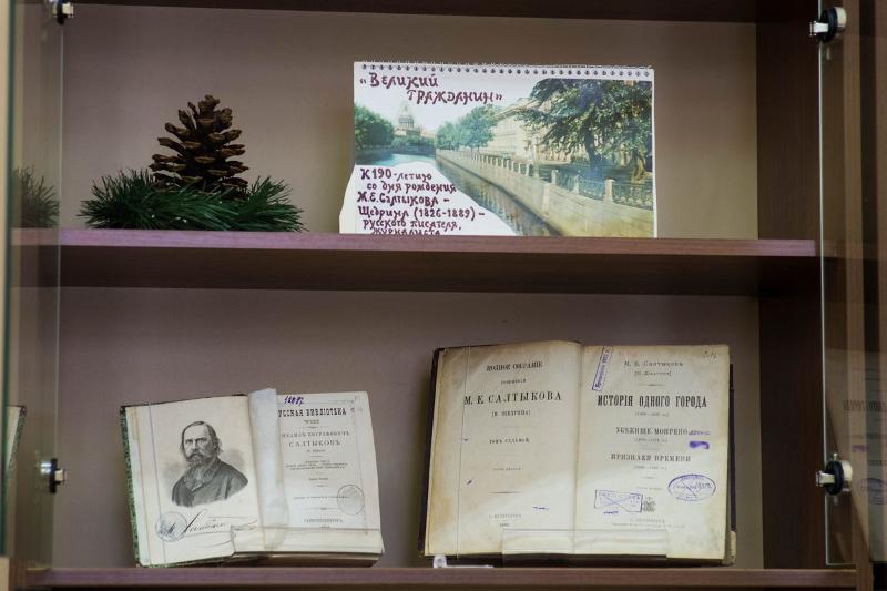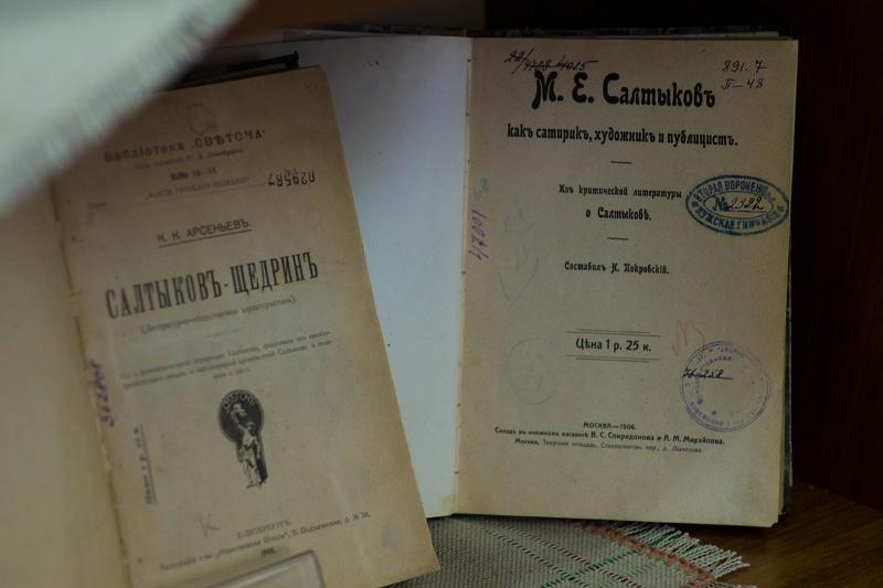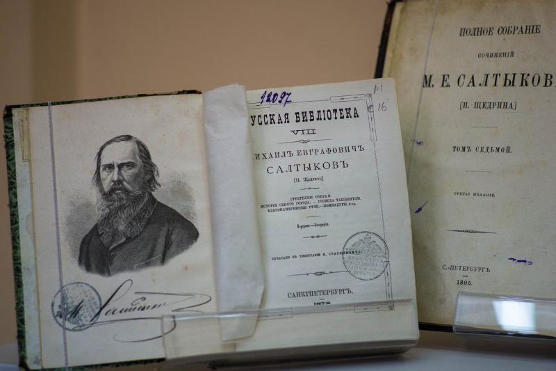 В отделе редких книг Зональной научной библиотеки Воронежского государственного университета открылась выставка, посвященная 190-летию со дня рождения М.Е. Салтыкова-Щедрина (1826-1889) – русского писателя, публициста, критика, журналиста, редактора. На ней представлены прижизненные издания произведений М.Е. Салтыкова-Щедрина, тома из полного собрания сочинений и произведений, выпущенных в разные годы конца XIX века.
