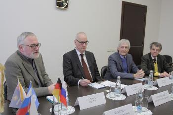 18 февраля прошли встречи гостей вуза с деканами и научно-педагогическими коллективами исторического, экономического, юридического факультетов, а также факультета международных отношений. Профессор Кляйн прочитал лекцию для студентов-экономистов и международников, профессор Гёланд встретился со студентами юридического факультета ВГУ. Студенты-историки прослушали лекцию профессора Вагнера «Земельные отношения и органы управления на Востоке Германии в XIX веке» и профессора Петера «Образ России и русских в Германии в XVI-XIX веках».