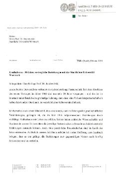 18–19 февраля Воронежский государственный университет посетила делегация Университета имени Мартина Лютера (Галле-Виттенберг, город Галле, Германия). В состав делегации вошли профессора современной истории Института истории, философского факультета 1, доктор Хартмут Рюдигер Петер (Peter Hartmut Rüdiger) и доктор Патрик Вагнер (Wagner Franz Hanno Patrick), профессор кафедры международных экономических отношений факультета права и экономики, доктор Мартин Кляйн (Klein Martin Michael), профессор гражданского права, трудового и социального права, факультета права и экономики, доктор Армин Гёланд (Höland Armin). Знаменательным поводом для визита стало празднование 50-летия сотрудничества ВГУ и МЛУ.
