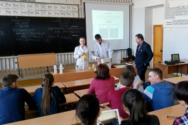 На химическом факультете Воронежского государственного университета продолжается цикл лекций для учащихся 8–11 классов школ города и области. 20 февраля заведующий кафедрой высокомолекулярных соединений и коллоидов Александр Шестаков рассказал пришедшим школьникам и любознательным взрослым об «умных» полимерах. Слушатели узнали, что эти материалы могут быть одновременно твердыми и жидкими, хрупкими и упругими, о том, что их структура и свойства меняются в зависимости от того, для чего они предназначены. Многие проблемы таких областей промышленности, как, например, современная нефтедобыча и фармакология, решаются с использованием уникальных свойств полимеров.