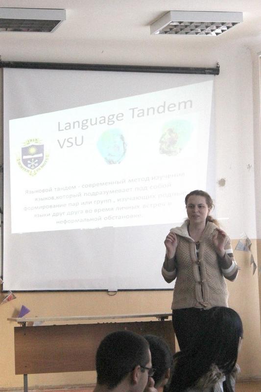 19 марта в Главном учебном корпусе Воронежского государственного университета состоялась третья встреча участников проекта «Языковой тандем», организованного студентами вуза при поддержке Отдела международных студенческих программ Управления международного сотрудничества ВГУ.