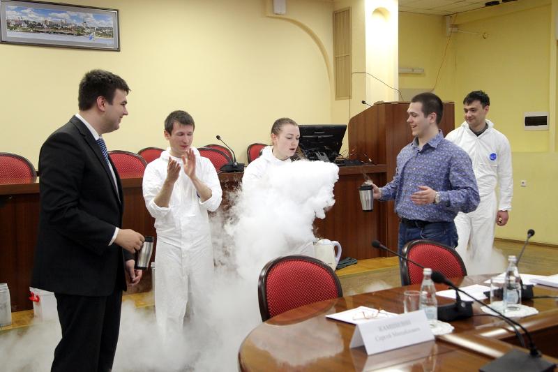 С творческими поздравлениями выступили: студент второго курса филологического факультета Алексей Кардаш, который представил музыкальную композицию на виолончели, иностранные студенты ВГУ – Милена Шофранац (Черногория) и Дивин Флорсиль (Конго), которые исполнили песню на английском языке, и команда молодых ученых вуза «Creative Science», которая показала зрелищное шоу научных экспериментов.