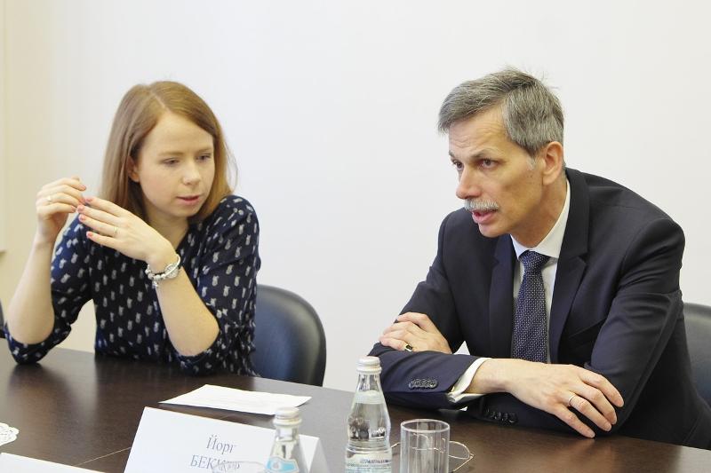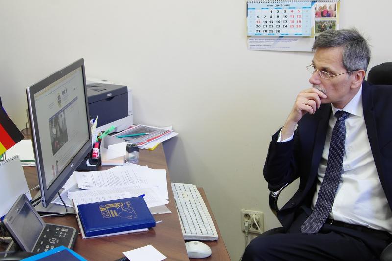 Кроме того, в рамках визита господина Беккера в ВГУ прошло совещание с начальником Управления информатизации и компьютерных технологий Алексеем Прохорченко, где были обсуждены вопросы модернизации и развития официального сайта Воронежского госуниверситета. Гость ознакомился с английской и новой, готовящейся к выпуску, версиями сайта, положительно отозвался об их дизайне и содержании. Он также дал советы по адаптации сайта для европейских пользователей.
