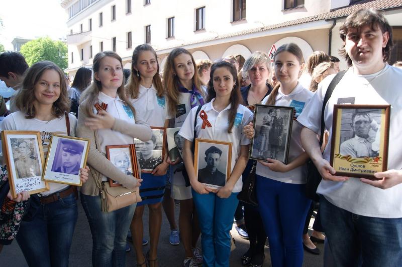 9 мая студенты и преподаватели Воронежского государственного университета присоединились к торжественному мемориальному шествию, которое состоялось в рамках всероссийской военно-патриотической акции «Бессмертный полк». Более 200 представителей нашего вуза пронесли от площади Ленина до площади Победы фотографии родных и близких, воевавших в Великой Отечественной войне.