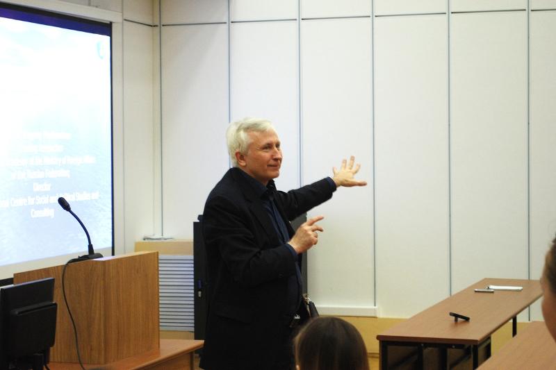 13 мая с открытой лекцией на английском языке перед студентами факультета международных отношений Воронежского государственного университета выступил профессор Московского государственного университета имени М.В. Ломоносова, ведущий исследователь Института международных актуальных проблем Дипломатической академии Министерства иностранных дел Российской Федерации Евгений Пашенцев. Лекция была посвящена информационно-психологическому противоборству в Латинской Америке.