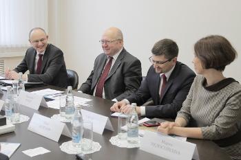 В начале визита ректор ВГУ, профессор Дмитрий Ендовицкий проинформировал почетных гостей об истории университета, взаимодействии вуза с международными компаниями, проектной деятельности, а также об опыте академического сотрудничества с вузами России и мира: