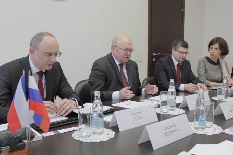 – На филологическом факультете ВГУ изучается чешский язык, это курс по выбору, и стоит отметить, что группы именно по этому направлению всегда самые многочисленные. Еще в советское время Воронеж тесно взаимодействовал с Моравией. На данный момент тесного взаимодействия с чешскими вузами у нас пока нет, сегодняшний ваш визит, я надеюсь, поможет интенсифицировать наши академические и научные связи. У ВГУ уже накоплен богатый опыт взаимодействия с европейскими странами в рамках образовательных проектов – вуз реализует 19 проектов, что признано самым большим вузовским «портфелем» европейских проектов и программ, у нас открыты и действуют программы двойных дипломов с университетами Австрии, Франции, Испании и других стран. Высококвалифицированные кадры, подготовленные при участии ведущих мировых образовательных центров – это фактор инвестиционной привлекательности региона, поэтому ВГУ готов стать площадкой подготовки специалистов для чешского бизнеса со знанием чешского языка.